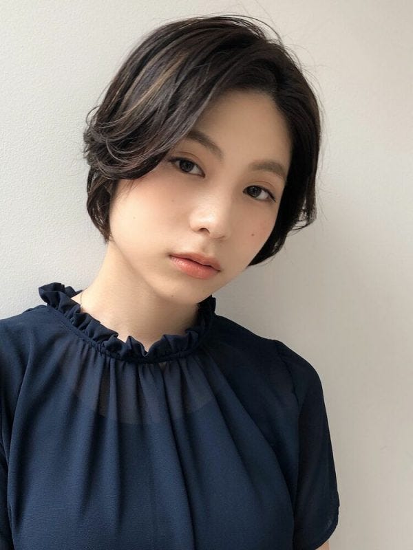 丸顔さんに似合うショート:黒髪