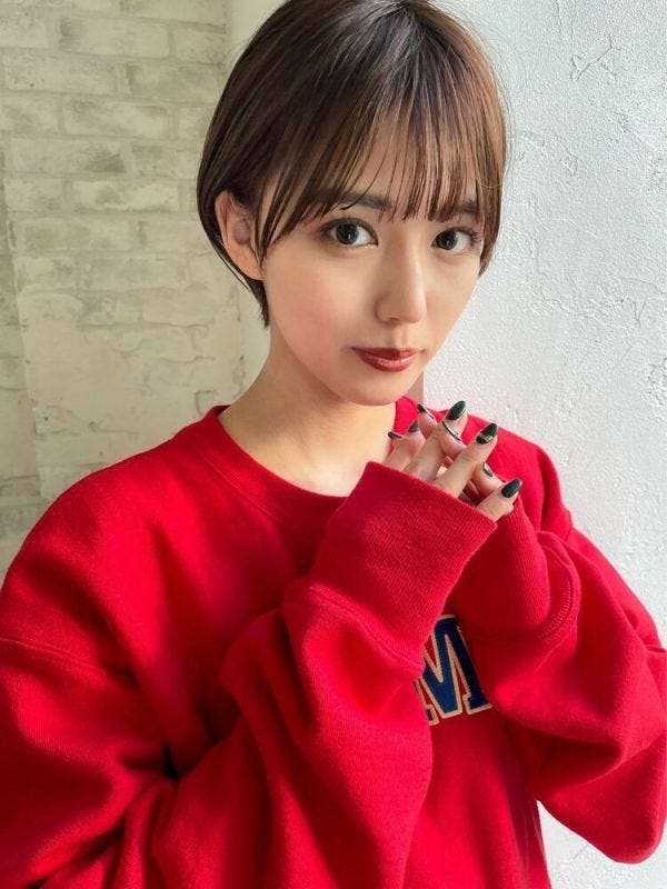 黒髪ショートは重く見えそうな印象がありますが、シースルーバングにすると抜け感が出て、縦ラインも強調できるので丸顔さんにおすすめです。