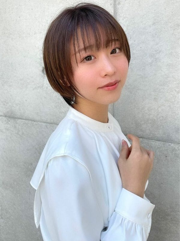 コンパクトでシンプルなショートは前髪に隙間を作って縦ラインを作ると丸顔がカバーできます。
