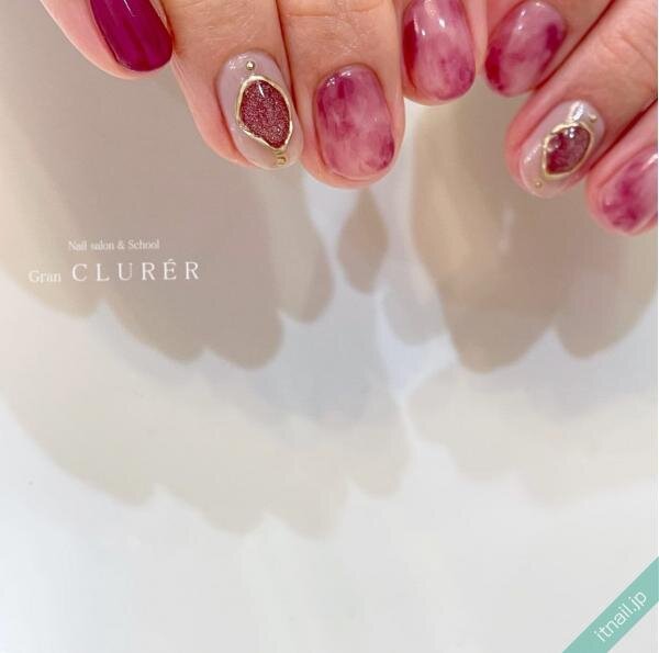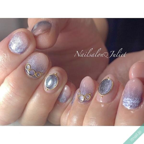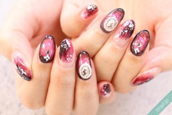 BIGサイズのストーンの周りに小粒のストーンを並べ、キラキラ光り輝くブローチネイルを作るのもいいですよね!