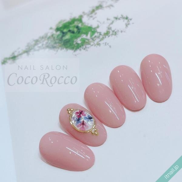キラキラは好きだけど、あまり派手なデザインはちょっと…という方には、シンプルネイルをベースに、爪1本だけにキラキラのブローチアートをプラスするデザインをおすすめします。