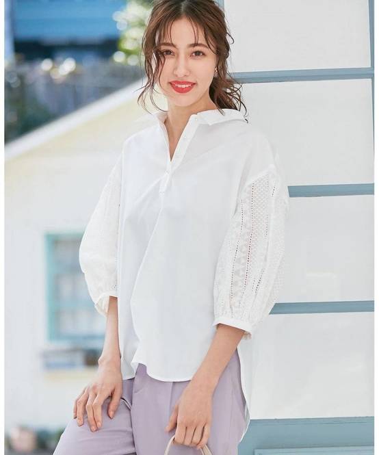 一枚で着映えする春ブラウス②any SiSのアイレットレースコンビシャツ ブラウス