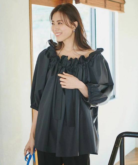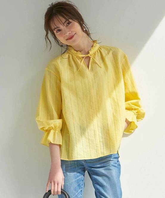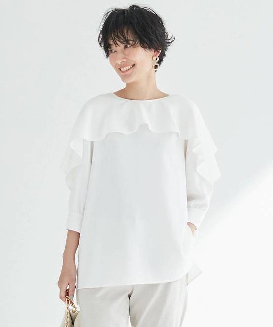甘めなフリルが顔まわりを華やかに仕上げ、さっと着るだけで着映えします。