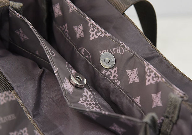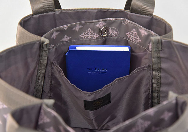 まずはメイン収納からチェックしていきましょう。メイン収納はマグネットボタンが付いていて防犯面も安心です。