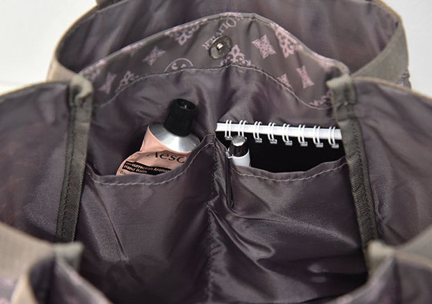 向かい側には少し小さいオープンポケットが2つ。鍵やハンドクリーム、文房具などの小物を収納しておくのに便利です。