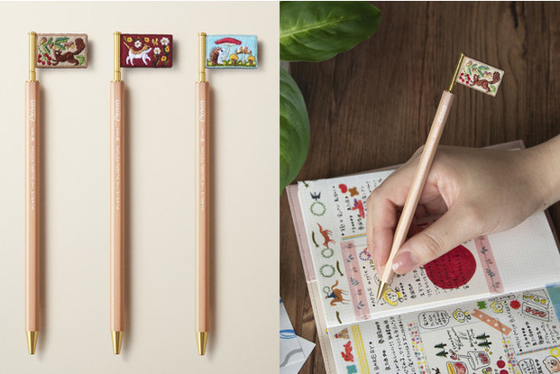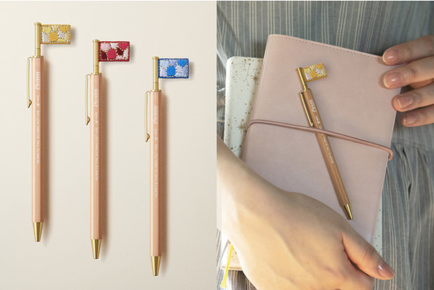 このフラッグペン結晶シリーズも、刺繍作家・デザイナーのhinakaとコラボレーションした「hinatelier(ヒナトリエ)」シリーズのもの。光り輝くステンドグラスのような結晶シリーズは、手元をキラッと照らしてくれる繊細なデザインです。 各¥1400