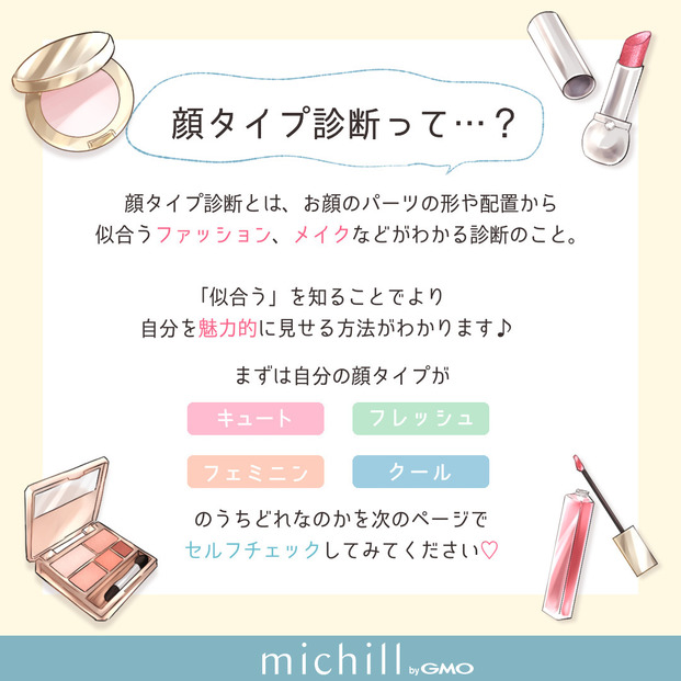 顔タイプ診断とは、お顔のパーツの形や配置から「自分に似合う」ファッションやメイクなどが分かる診断のこと。