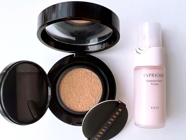 「美容液ファンデ」として有名な、ボビイブラウンのクッションファンデ。かなりみずみずしいテクスチャーですが、マスクにべったりつくことはありません。