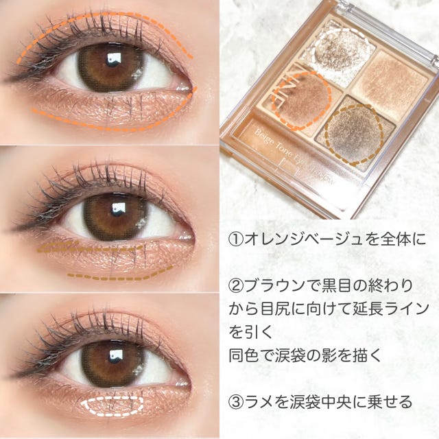 また、ラメが1色入っているので、ポイントで光らせるのもおすすめ!目頭や涙袋、黒目の上などに乗せれば立体感もUPして、より印象的な目元に仕上がります♡