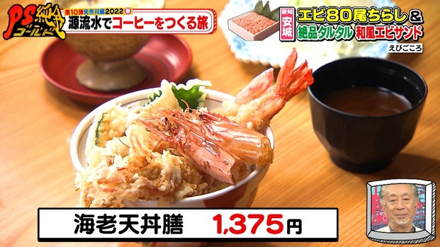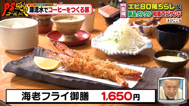 15cm以上の有頭エビを使用するエビ料理は、どれもボリューム満点!「海老フライ御膳(1,650円)」や「海老天丼膳(1,375円)」など、エビをさまざまな料理で楽しめます。