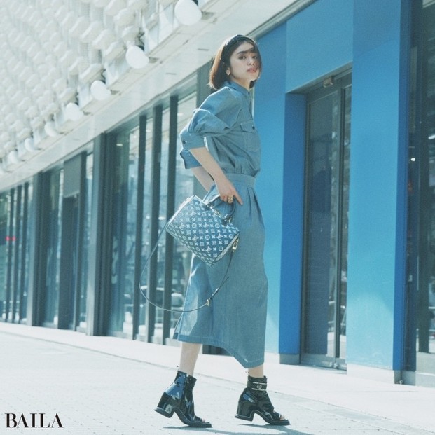 この春は、ルイ・ヴ ィトンの永遠のアイコンバッグ「スピーディ」のデニム素材に注目! カジュアルなストーンウォッシュに、ボリュームブーツの辛口なテイストがマッチ。