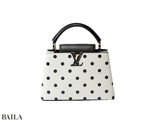 かちっと品のいいハンドバッグを、ポルカドットのジャカードで。「カプシーヌ BB」は、可愛げを忘れないフレンチシックなムード。(ストラップつき18×27×9)¥720500/ルイ・ヴィトン クライアントサービス(ルイ・ヴィトン)