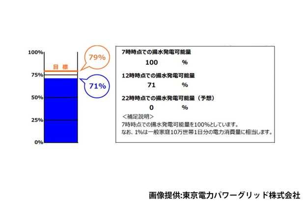 22日12時時点でこの揚水発電可能量は71%だが、22時になると0%になると予想されている。