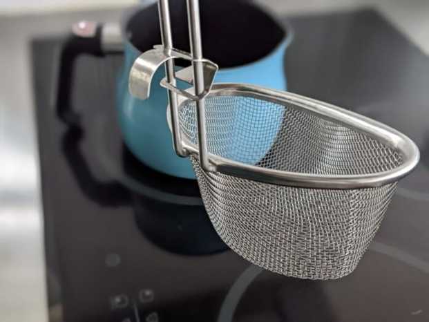鍋にかけるタイプのザルで1つの鍋で2種類作る