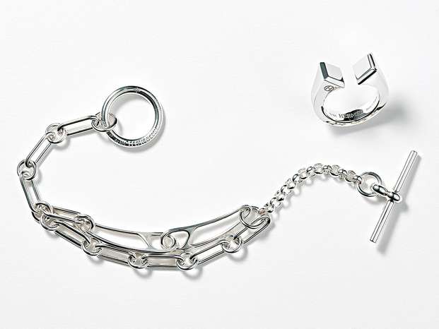 左、ブレスレット「シェーヌ・ダ ンクル・パンク」〈SLV〉¥157,300(予定価格)これひとつで充分な存在感あるリング。右、リング「クルド・フォルジュ」〈SLV〉¥130,900(予定価格)(ともにエルメス/エルメスジャポン)
