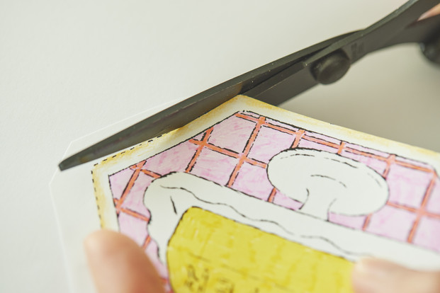3.塗り終わったら、はさみでおおまかに切り取る。