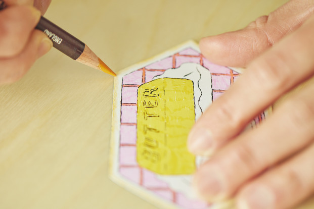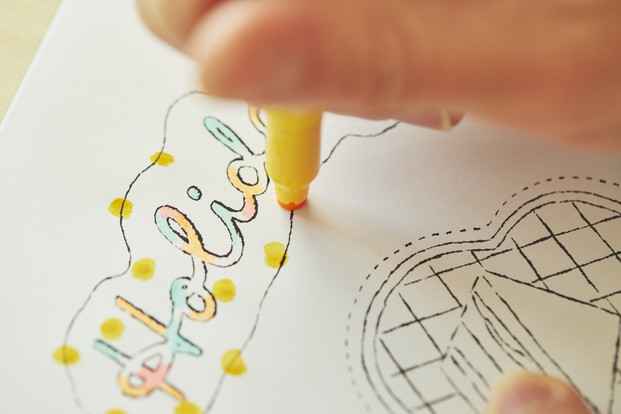 1.好みのカラーペンで広い面から塗っていく。塗るときは、細いペンを使って細かく塗ると、ムラになりにくい。