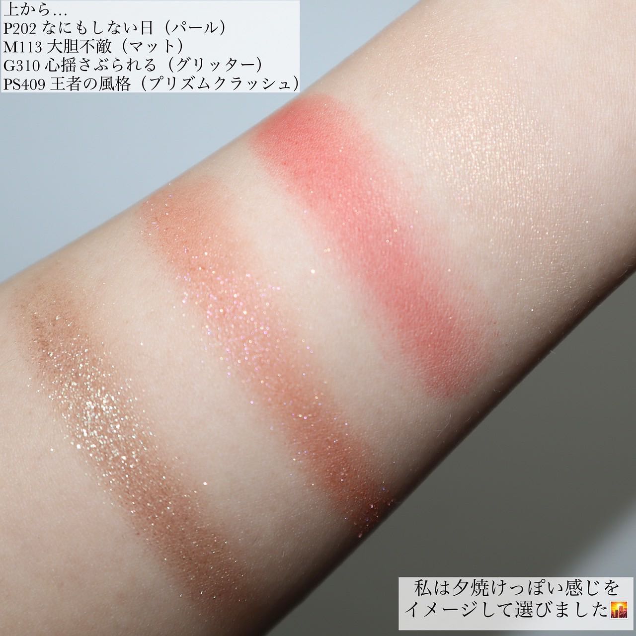 夕焼けのようなイメージが可愛くて、この4色にしました。1つ1つに欲名があって、その時の気分などで選ぶのも楽しい!