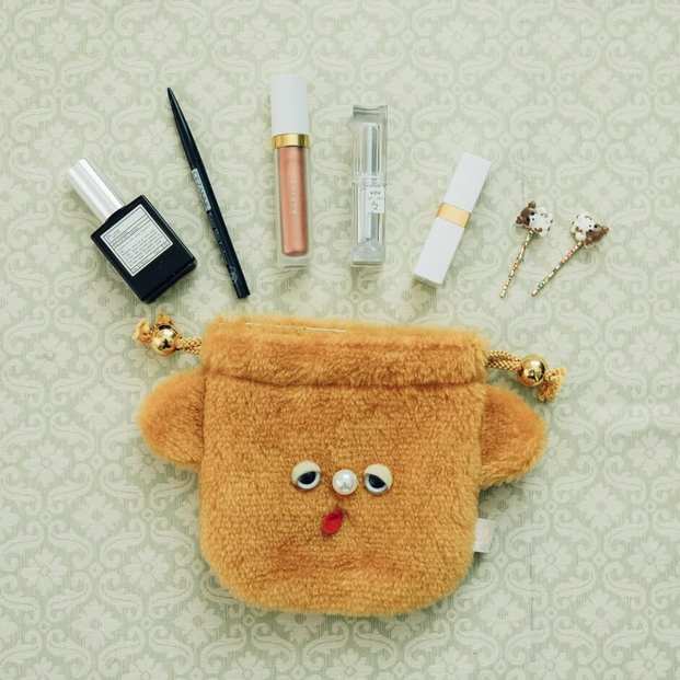 「インスタで見つけたハンドメイドのポーチは、なんとも言えない表情に惹かれました。裏地付きのしっかりした作りも◎」