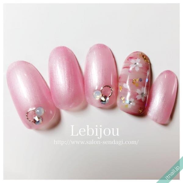 ラメやラインストーンで桜ネイルに程よい華やかさを