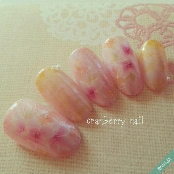 ピンクパールのカラーが印象的な、桃色ネイル。パールはラメよりも大人っぽくなるので、ちょっとだけキラキラが欲しいという方にオススメ。また、肌を綺麗に見せてくれる効果もあります。桜だけでなく、ベースにカラフルな色味を使っているのも、アクセントとなっていて可愛いですよね。