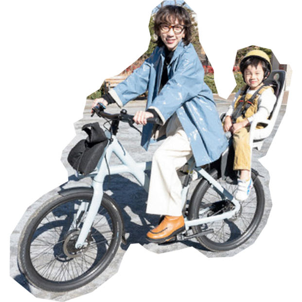 フリーランスPRとして働く半井さんは、3年前VanMoofが日本上陸した直後からの愛用者。「ちょうど息子が生まれてママチャリを探していた頃、夫がこれなら!と見つけてきたもの。あまりにも快適で、その後夫と私1台ずつ購入。一時期は車も不要になり手放していたほどです。今も15㎞程度圏内ならこれ一台。私たち夫婦にとって欠かせない相棒です」