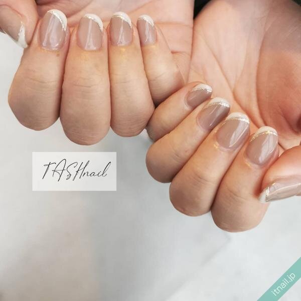 こちらは、くすみ感のあるベージュと白の斜めフレンチを組み合わせたデザインです。