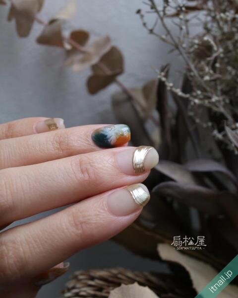 ベースには透明感あふれるクリアジェルとブラウンを使用。