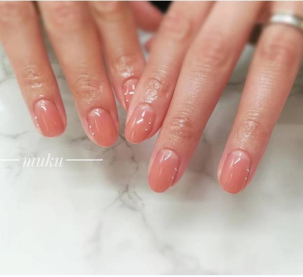 春におすすめの肌馴染みショートネイルデザイン①塗りかけアート