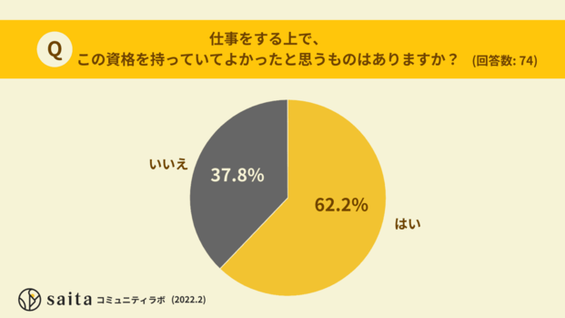 さらに「仕事をする上で、この資格を持っていて良かったと思うものはありますか?」という質問に「はい」と答えたのは62.2%。