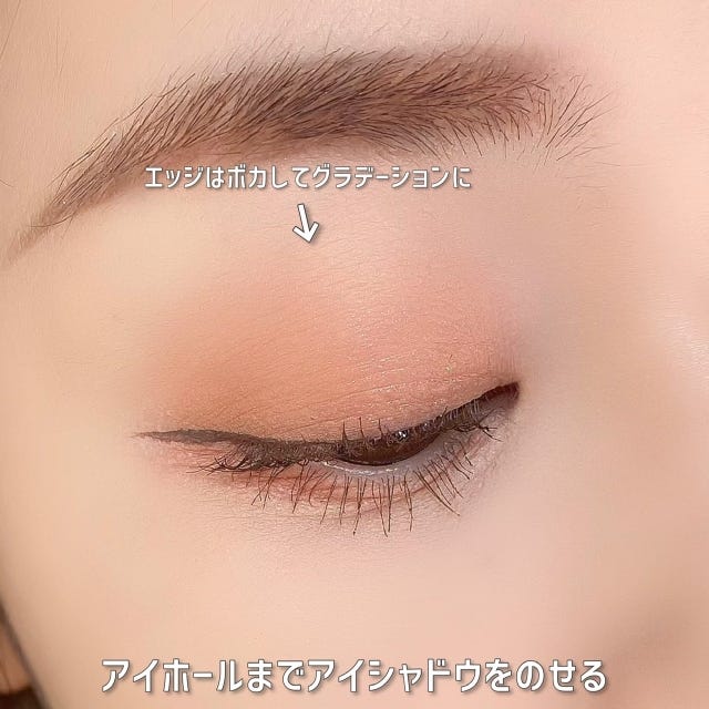 目頭側のオレンジは広げすぎず、目を開けた時にチラッと色味が分かる程度にするとより◎