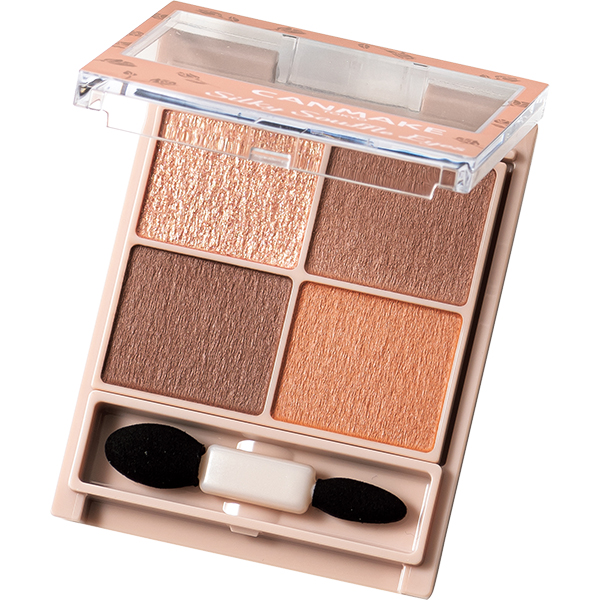 スフレのような触り心地の良い柔らかパウダーが肌に溶け込むように密着。シアーな発色なのでサーモン初心者にも◎。キャンメイク シルキースフレアイズ M01 ¥825(井田ラボラトリーズ)