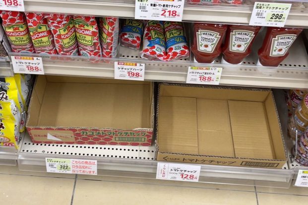 そんな値上げ前日の3月31日の夕方、都内のスーパーを訪れたところ、一部の商品が棚から完全になくなっていた。カゴメのトマトケチャップは500グラムの大容量のものが品切れ。