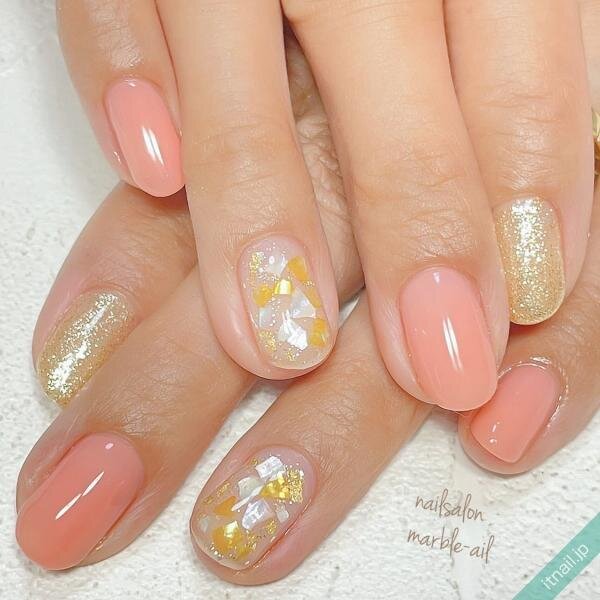 コーラルカラーのキレイな色の変化を楽しむなら、グラデーションネイルがおすすめです。爪の先端が濃くなるようにデザインするだけで、美爪にも見えます。もやもやしたデザインを入れて、ニュアンス感を楽しむのも◎。