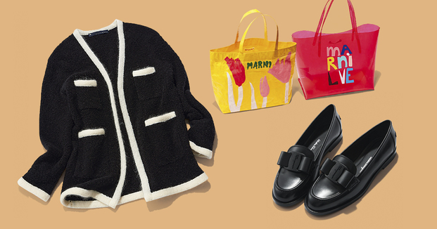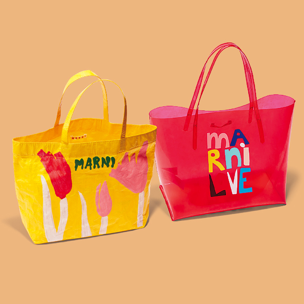 (左)バッグ[縦32×横46×マチ14㎝]¥16,500(ともにマルニ/ブレイブ キッド)