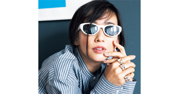 リング各¥74,800(すべてザ レタリング/エスケーパーズオンライン)シャツ¥35,200(イレーヴ)サングラス¥39,600(アイヴァン/アイヴァン 東京ギャラリー)