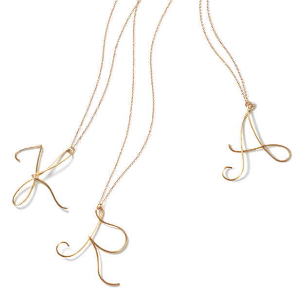 大きくても可愛くて繊細。最近では書体が凝ったアルファベットモチーフも多く存在しています。目立つものはちょっと……という人でも主張控えめでトライしやすく。14Kゴールドフィルド素材を手作業で仕上げた、繊細なワイヤーワークがポイント。