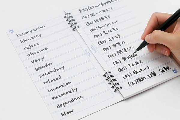 細長いノートなのですが、スマホと連動できるのがポイントです。ここに英単語などを書き、専用のアプリで読み取ってスマホに取り込むと、スマホ内にオリジナルの単語カード帳が出来上がります。英単語の暗記にはぴったりですね。