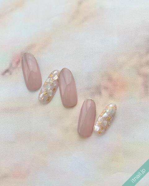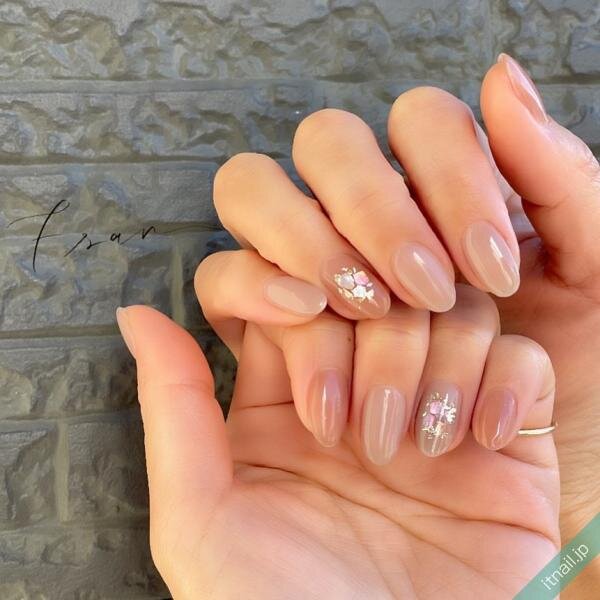 指先に馴染むスキンカラーのネイルは、上品に見えることから幅広い年代のおしゃれさんに人気のデザインです。ワンカラーでシンプルに決めるネイルも人気ですが、物足りなさを感じてしまう方もいらっしゃると思います。そんなときは、シェルを添えたデザインがおすすめ♡スキンカラーの上品さはそのままに、美しい輝きと存在感をプラスしてくれますよ♪卒業・入学シーズンはもちろん、デートやオフィスネイルにもぴったりなので、ぜひ参考にしてみてくださいね。