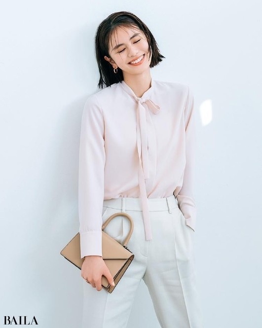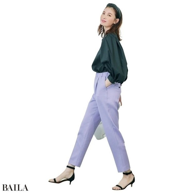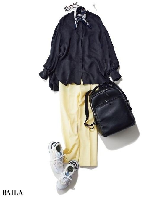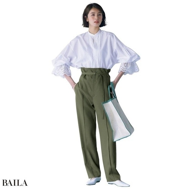 ブラウス¥17600/ロートレアモン パンツ¥20900/シンゾーン ルミネ有楽町店(ザ シンゾーン) イヤカフ¥9900/ジュエッテ ネックレス¥6200/ロードス(ルメル) バッグ(4月発売予定)¥52800/アルアバイル(ア・ヴァケーション)