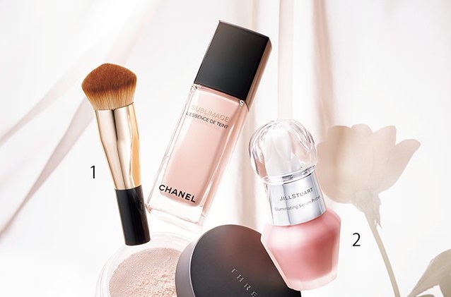 (2)シャネルのリキッドは筆で面をサッと塗る。ヴェールを1枚かける感覚で。塗布後、指先でたたきさらに密着。