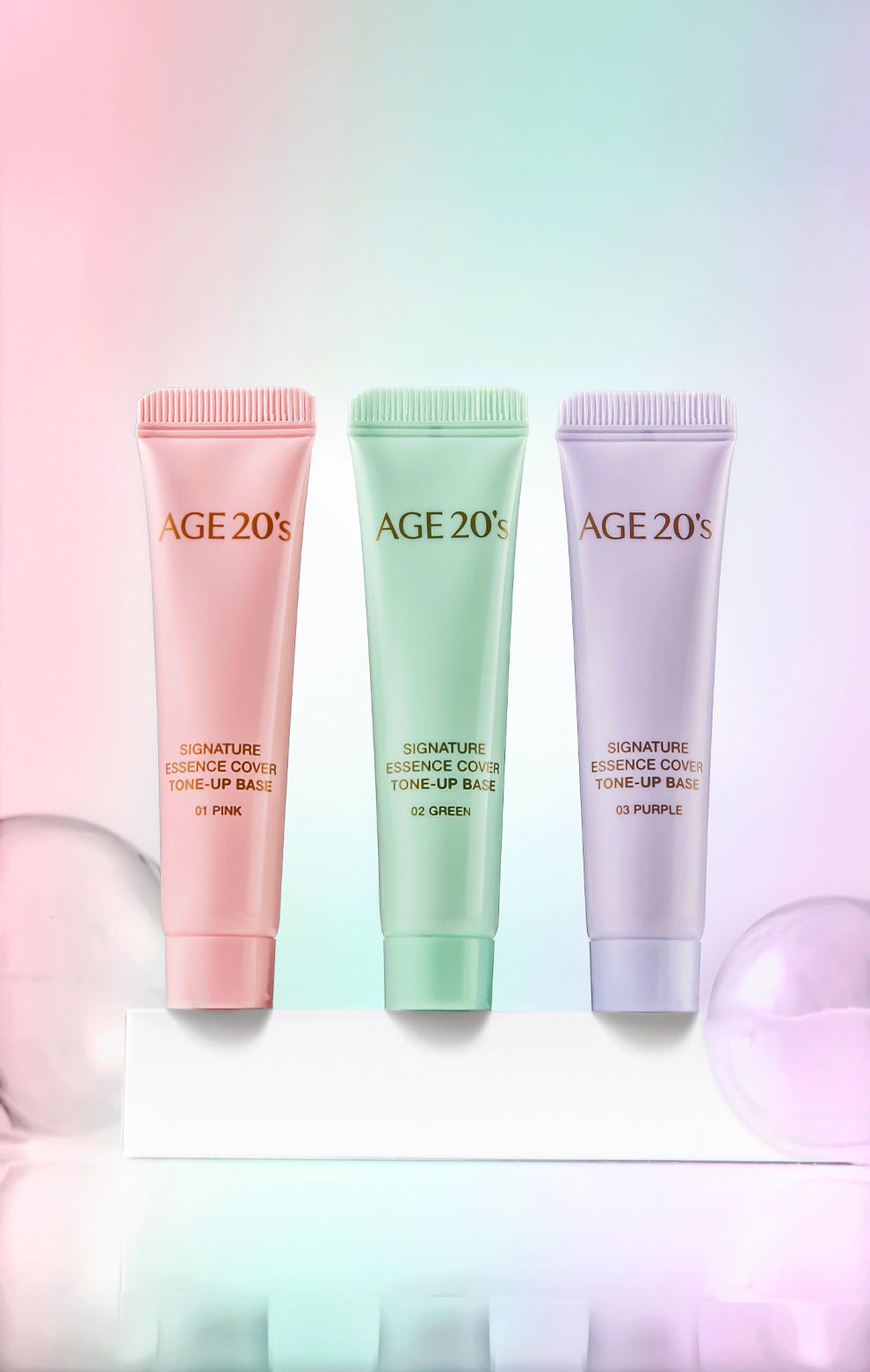 さらに同時に、肌トーンの悩みに合わせて選べるトーンアップベース【エージ トウェンティズ シグネチャーエッセンスカバー トーンアップベース】も販売。