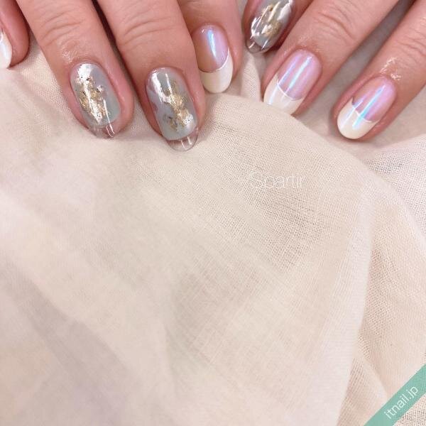 オーロラベースのホワイトフレンチだけでも可愛いですが、こなれ感や抜け感を出したいときは、クリアフレンチネイルを入れてみるのもおすすめ♡クリアなフレンチ部分が爽やかで春らしいネイルにしてくれます。
