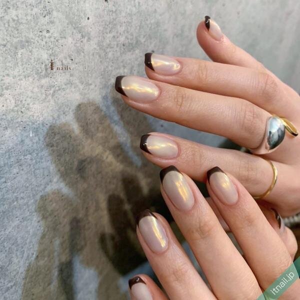 透明感たっぷりのオーロラネイルは、可愛く見せたいときにぴったり!そこへ細いラインが印象的なスキニーフレンチを入れると、大人向けの上品ネイルに仕上がります。可愛いも大人っぽいも欲張りたい方におすすめ♡
