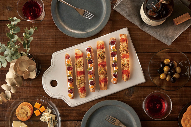 スティック状のおかき「RICE PALETTE(ライスパレット)」(2個入540円~)は、焼いた玄米の生地にドライフルーツやナッツなど、色とりどりの素材が飾られたユニークな商品。