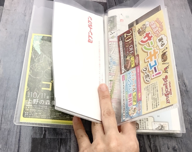 それがこちら「三ツ折りが簡単に作れるスリムチケットホルダー」お値段は190円。