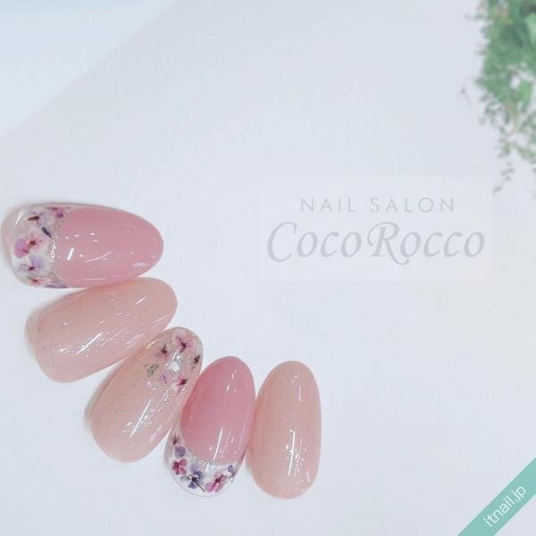 人気の高いシアー系ベージュとピンクを、フレンチ仕様にアレンジしたネイル。根元がクリアなことでより透明感が出て、ドライフラワーの可愛さも際立ちます。このようなカラーを塗ったことがある方は多いと思いますが、フレンチにすることでいつもと違う雰囲気を楽しめるので、是非トライしてみてください!