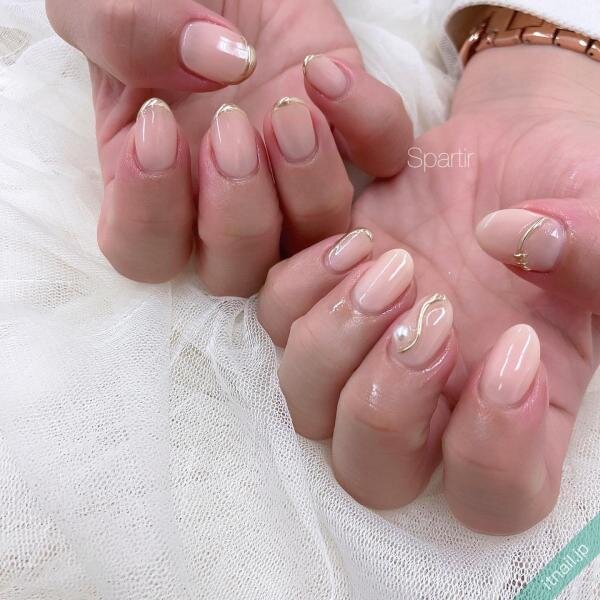 ぷっくりしたゴールドラインで、旬なデザインに。大人っぽく仕上げつつも、左右で違うデザインにしたり、ニュアンスアートを施したり、さりげなくアートを楽めます。ラインの色をシルバーなど他の色にも変えられるので、お持ちのアクセサリーに合わせてチェンジしてもOK。