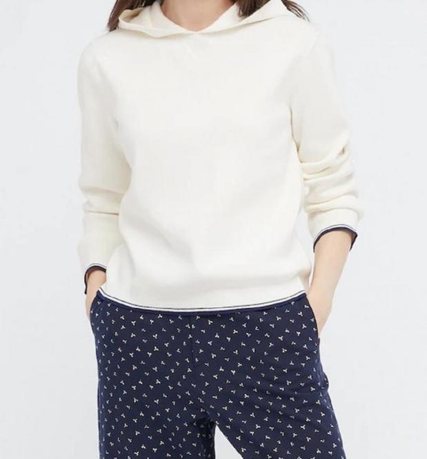 「ニットプルパーカ(長袖)」は、3990円→2990円(1000円オフ)。フランス国旗の色でもある赤、青、白を基調した、上品見えするアイテムです。袖口や裾に、さりげないラインが入っています。