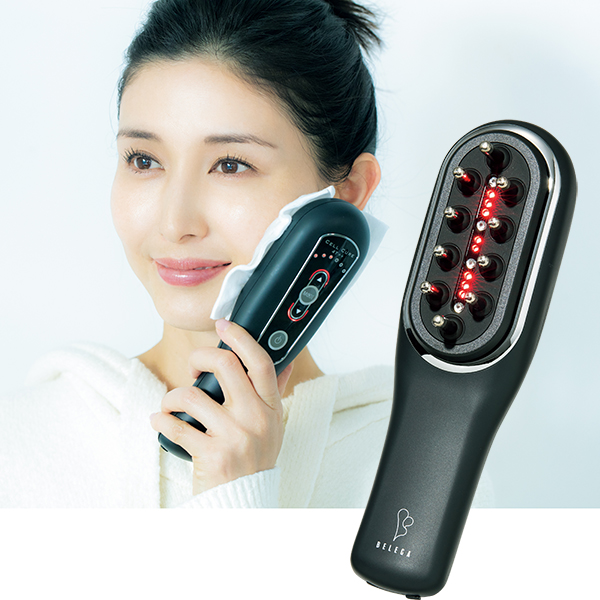 収録前には美顔器でケアを。たった5分で頭皮から顔を引き上げてくれるので、いつも仕事には持っていきます。現場のプロから愛されるブラシ型美顔器。 セルキュア 4T++ ¥199,100(ベレガ)